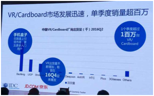 VR和AR自从2016年开始便一直是IT领域的热点话题,更是深受资本投资的亲睐,一个可以将你代入虚拟现实世界,另一个则是将虚拟现实世界展现在现实世界中。而且很多人都认为VR将是互联网时代的又一个重大变革,这不,在去年9月6号京东VR发布会上,IDC和京东联合发布了AV/ARA市场分析报告,在该报告中指出中国VR眼镜市场将迎来爆发,而时间则是2017年第四季度!