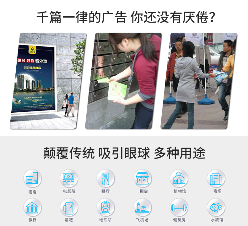 这些3D技术当中,3D全息广告机推广最为普及,使用的是最多的一种。3D全息广告机能够安装在我们生活中的许多场景中,是其他技术现阶段无法做到的。3D全息广告机能够通过墙面支架安装在任何一面墙上,也可通过吊顶支架安装在天花板上,或者通过三角支架、连屏支架、保护柜摆放在任意位置,还能通过背包出现在人流之中。