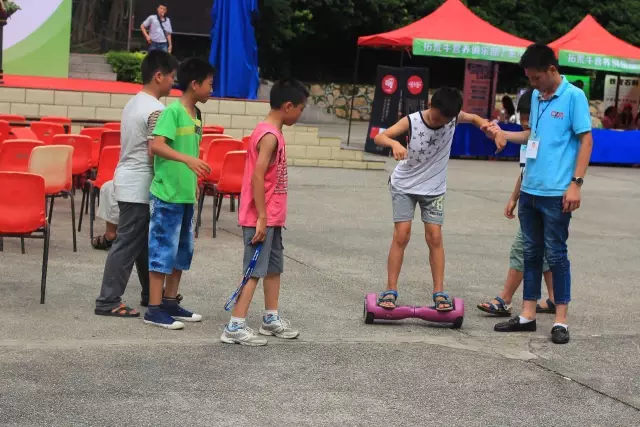 小朋友们骑着平衡车,为大家表演一段平衡车炫技秀。