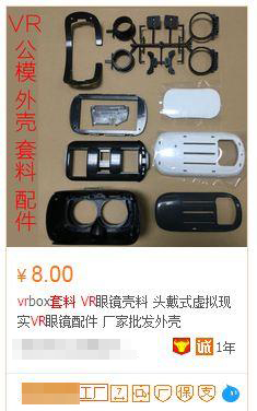 曾有VR资深人士透露,山寨VR工作坊往往仿照成熟产品采购套料,然后进行贴牌加工。而小编在阿里巴巴1688采购平台上搜索得知,一套VR BOX套料,最低售价仅8元。